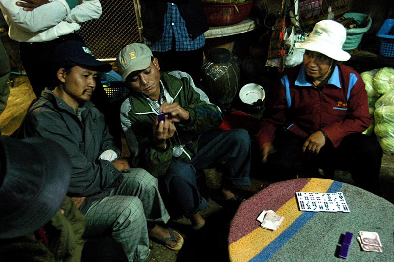| The players often ask their friends for advice, and it is sometimes a team sport, though I am not sure if the risk of loss is shared. There are many spectators to the games as well, and they will last as long as the vigil—all night and into the dawn. |