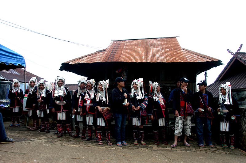 Immediately after the body is placed in the coffin, several of the guests and family members line up outside the house, whiskey bottles in hand, to await the arrival of the phi ma.